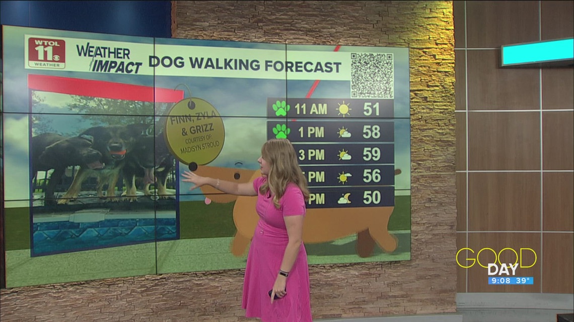 Here is your dog walking forecast and a look at the week ahead with featured pups Finn, Zyla and Grizz!