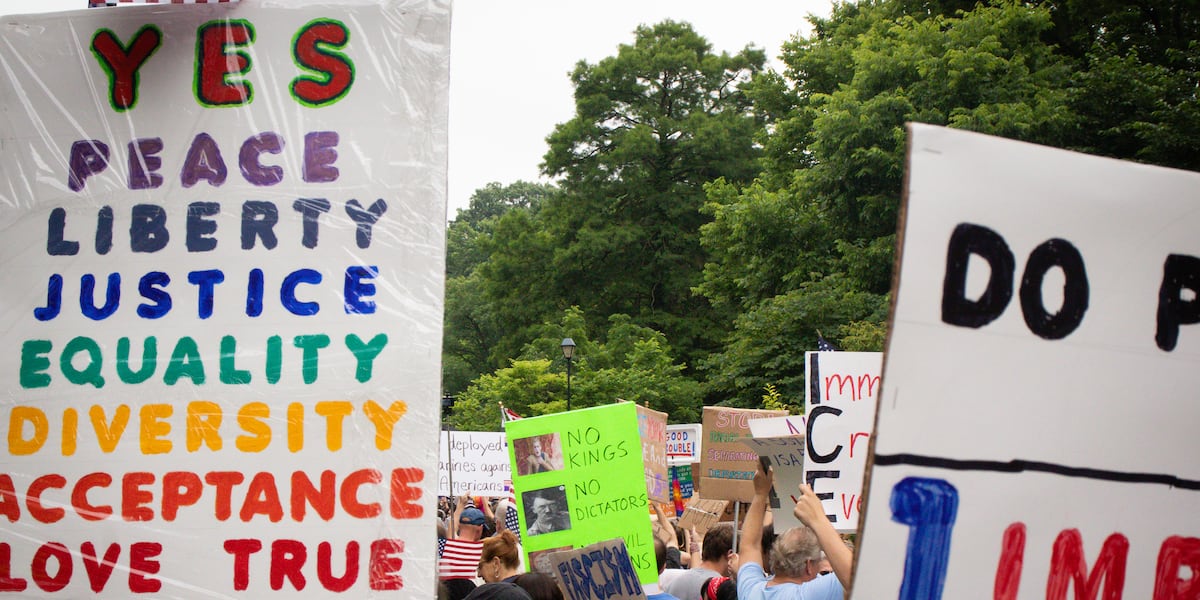 National organizers say the aim of the protests is to protect democracy, reject authoritarianism and to send the message that “we are a nation of equals, and our country will not be ruled by fear or force.”