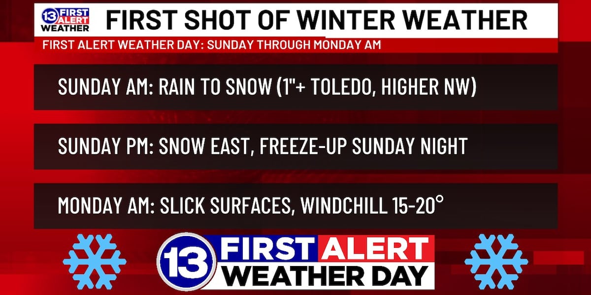 Stay with 13abc as we take you through Old Man Winter’s first visit of the season to NW Ohio/SE Michigan.