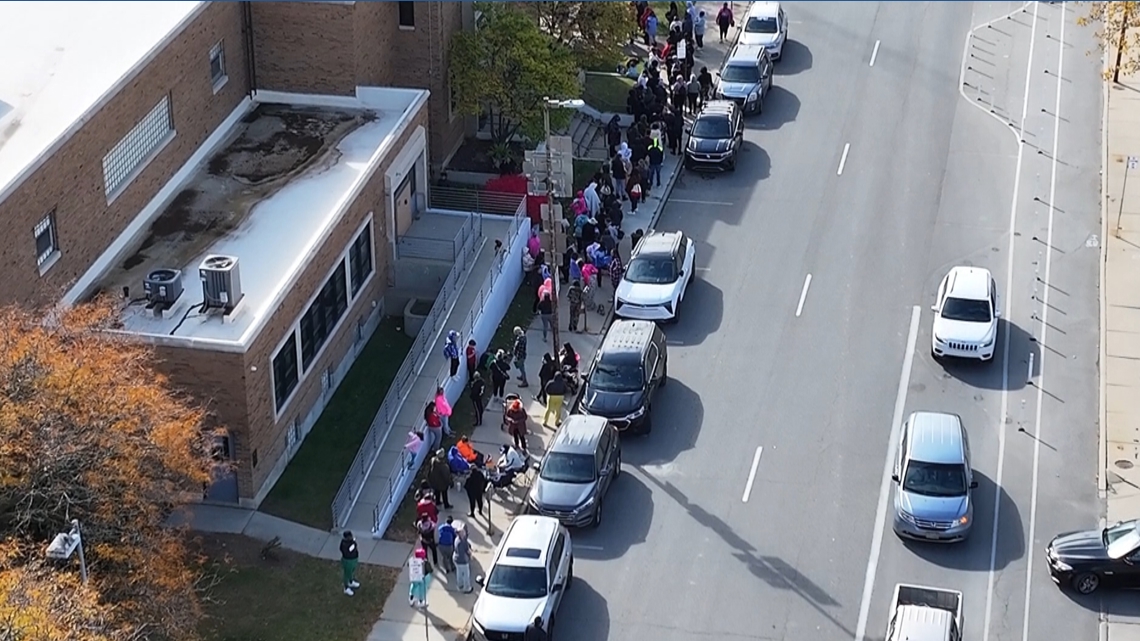 The first 500 families in line were also given Thanksgiving baskets, complete with a turkey.