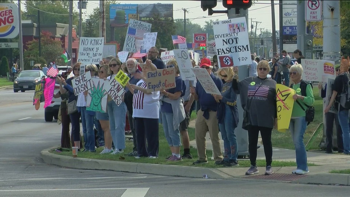 ‘No Kings’ protest draws thousands to line the streets of Toledo Saturday
