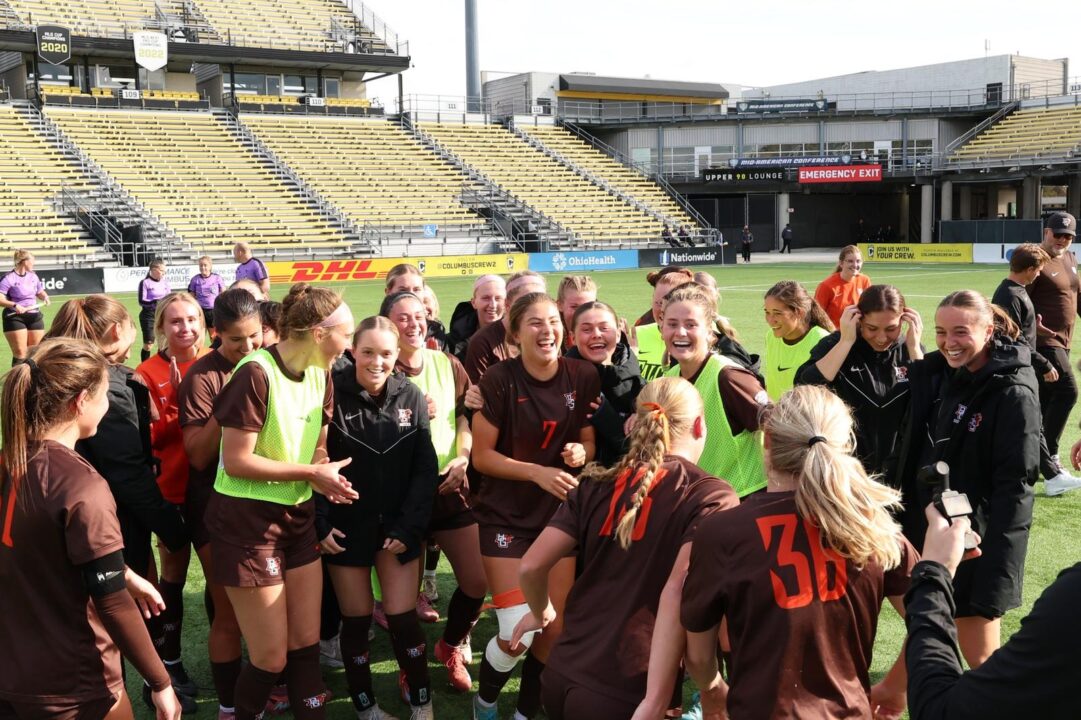 Fellow junior Ella Kane provided the assist on Mazzaferro’s winner. Kane and sixth-year collegian Ellie Pool worked a combination play near the corner flag on the left side of the field. Kane, facing the sideline, eluded two would-be defenders with a spin move, then worked her way past several more opponents as she brought the ball into the box. She slid a pass to Mazzaferro, who went top shelf for the “Golden Goal” and a trip to Tuesday’s semifinal.