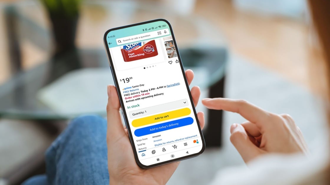 The new blue button appears below eligible items on the Amazon Shopping app and website on mobile. You may see “Add to today’s delivery” or “Add to [day] ‘s delivery,” depending on when your existing order is scheduled to arrive.