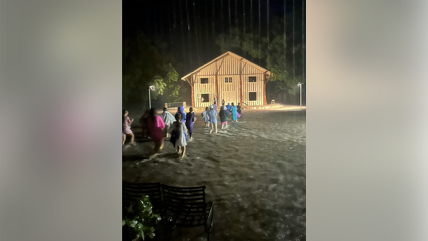 3:26 a.m. — Time-stamped photos showed campers walking through water toward higher ground.